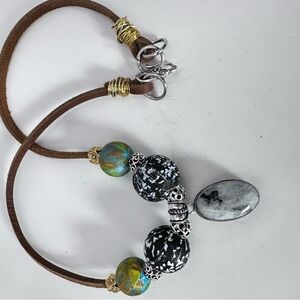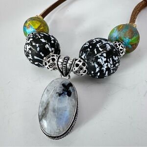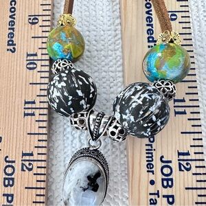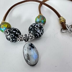 Handmade Pendant and hand paint beaded Necklace on Leather cord.