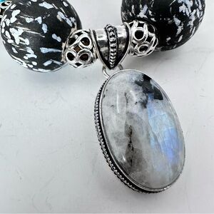 Rainbow Moonstone Pendant Iridescent Wire Wrapped Necklace Handmade Leather Cord