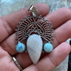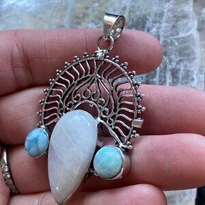 Rainbow Moonstone and Larimar Pendant Stone Crystal Jewelry