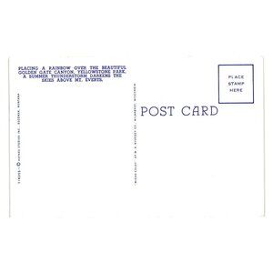 Vintage postcard featuring a scenic rainbow arching over Golden Gate Canyon and Mount Everts, Yellowstone Park. Glossy finish ideal for collectors or decor enthusiasts.