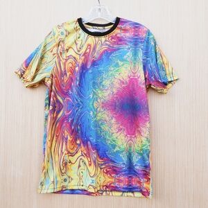 Rainbow Paint Tie Dye Short Sleeve Men's T Shirt Size Small