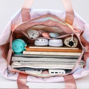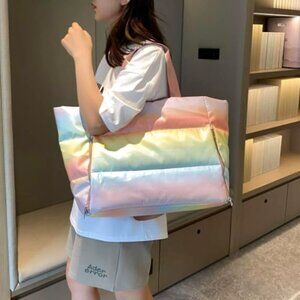 Rainbow Pastel Waterproof Beach Tote Large Capacity with Compartments Women