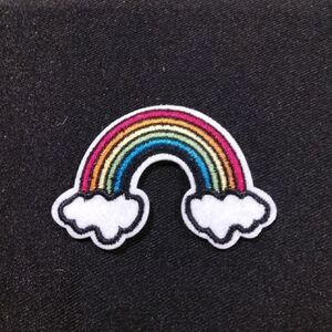 Colorful rainbow patch with white clouds. Perfect for adding a pop of color to any item. please someone buy it