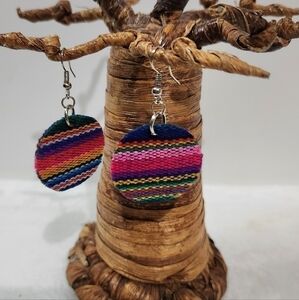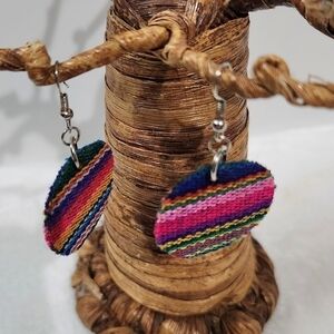 Rainbow Pride Fabric Round Circle Drop Dangle Silver Fish Hook Earrings. 1.25" in diameter, fun & bright colors, lightweight, silver accented fish hooks. Like new condition!
