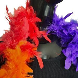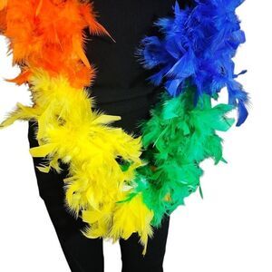 This brand new beautiful Rainbow Feather Boa is the perfect addition to any vintage clothing collection. With its vibrant and colorful design, it is sure to make a statement wherever you go. The boa is made with high-quality materials, ensuring that it will last for years to come. The feathers are soft and comfortable to wear, and the size is perfect for regular use. This boa is great for any occasion, whether you're looking to add some flair to your outfit or simply want to show off your unique style. Don't miss out on this one-of-a-kind piece!