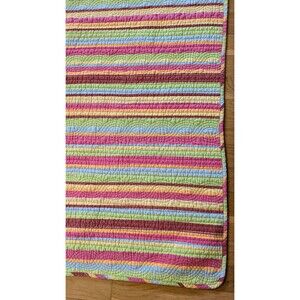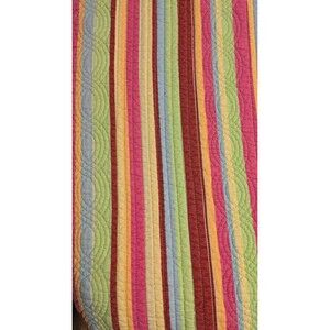 Homemade With Machine Quilt 84" X 84" Full Queen Reversible with two matching pillow shams. It is a more modern style, but beautifully homemade and quality. It is colorfully striped on one side with an almost rainbow design. It could be reversed to use the other side, which is a beautiful shade of green.