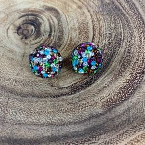 Rainbow Rhinestone Pave Half Ball Stud Earrings