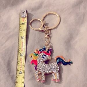 Rainbow Rhinestone Unicorn key chain and bag charm