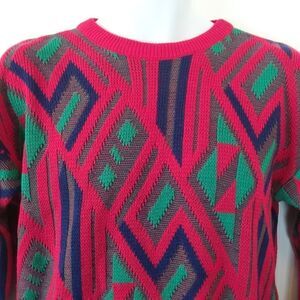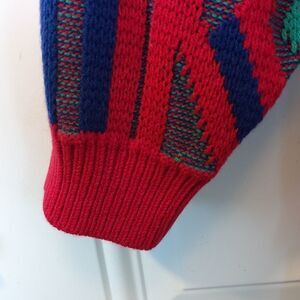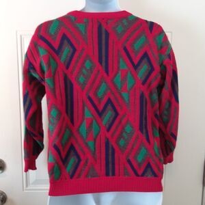Rainbow Ridge red green and blue crew neck sweater.