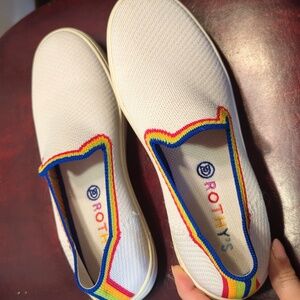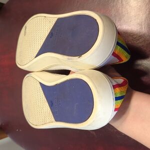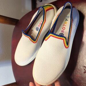 Size 8.5 limited edition Rothy's rainbow slides, perfect for summer! Lightly worn for one season and have been washed.
