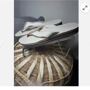 Rainbow Sandals Womens Sz 10 Flip Flop Thong Flats Comfort Beige Fabric Slip On