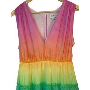 Rainbow Silk Tiered Maxi Dress Sleeveless V-Neck Designer Festival RX10446