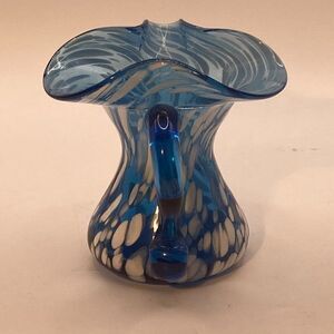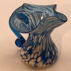 Rainbow Small Mini Pitcher Splatter Vase Blue White Hand Blown Hand Painted