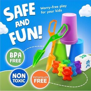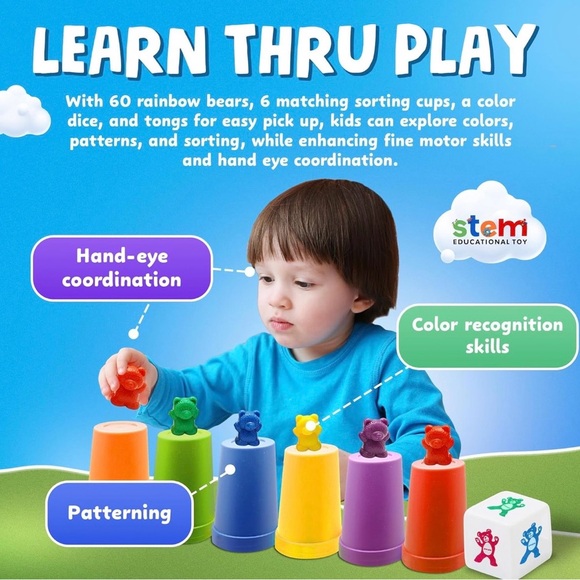 Engage your child with these colorful sorting cups from . Enhance their color recognition and motor skills with vibrant play.
