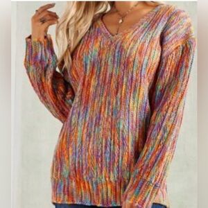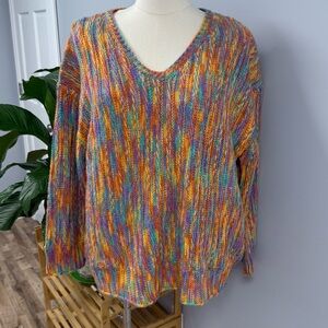 Rainbow Space Dye V-neck Sweater Plus Size 1X 2X Suzanne Betro Crochet Boho