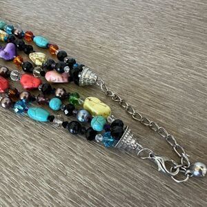 Beautiful 3-strand multicolor stone beaded necklace in excellent like new condition. Fairly heavy for its size.