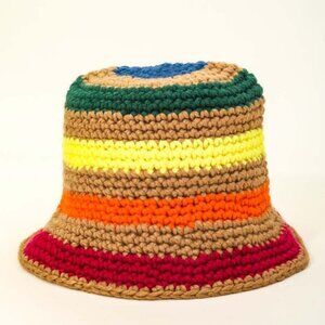 Rainbow Striped Crochet Knit Bucket Hat Br