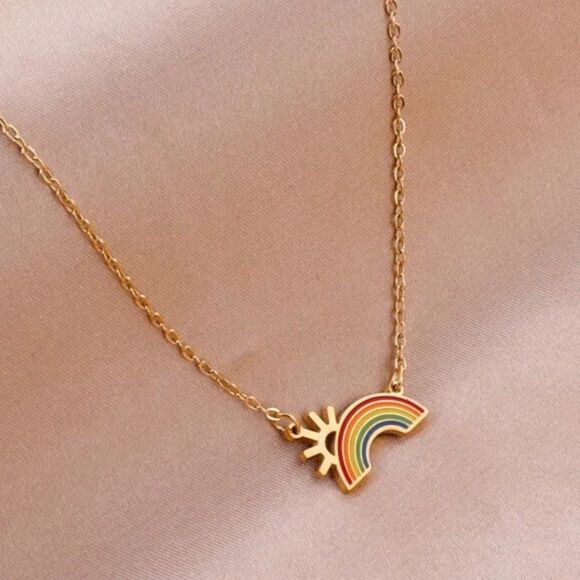 This classy necklace features an adorable rainbow pendant at the end of a gold-plated chain. Wear it alone or layer it with your other favorite necklaces.