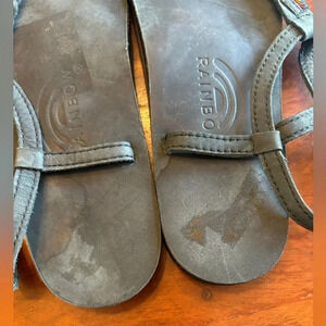 Rainbow T-Street Leather Sandals. Black leather. Braided t-strap with adjustable buckle. Incredibly comfortable and durable.