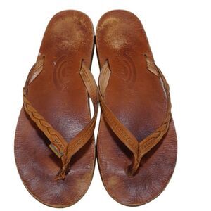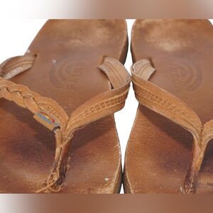 Brown classic Rainbow thong-style flip flop sandals with thin braided strap
