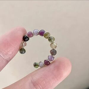 Rainbow Tourmaline Cuff Open Ring Fashion Beaded Adjustable Ring
