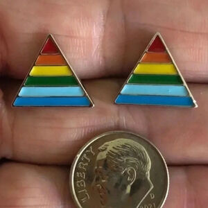 Rainbow triangle stud earrings. Made of silver tone zinc alloy. Bundle and save. I ship fast!