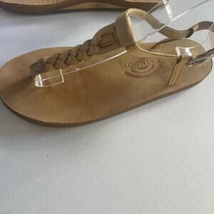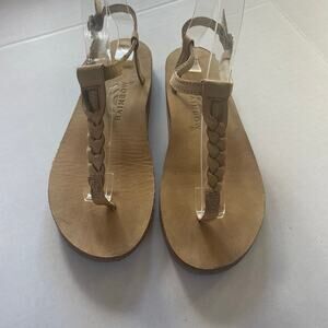 Rainbow T-strap Beige Leather Braided Thong Flat Sandals size 7