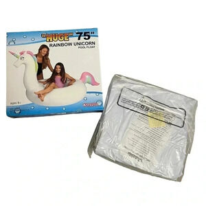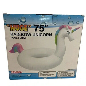 Rainbow Unicorn 75” White Pastel Swimming Pool Beach Water Float