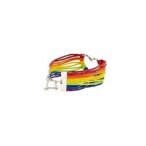 Show your support and pride with this 6 color cord rainbow bracelet. Color cords attach to an open heart, symbolic of the open heart and acceptance we want for all. Make a statement with this trendy bracelet and let the world know that your heart is full of love! 17 cm in length (6.7 inches)