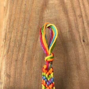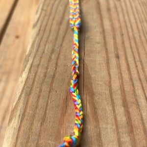 Handmade by me! If you want different colors I recommend checking out the custom bracelets in my shop! This bracelet can be tied around your wrist.