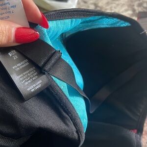 This is a new item it has a zipper in the back it is a two XL and has some padding so that you don’t need to wear an additional bra with it. There is some slight stretch I am typically a 16-18 and this fits me however I chose another outfit to wear to my event.
