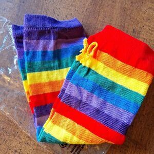 Rainbow fingerless gloves sleeves thumb hole multicolor accessory