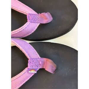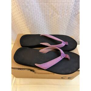 Rainbow flip flops sandals black purple size 7.5-8. measures 10" long. good used condition.