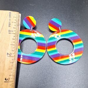 Rainbow hoop earrings multicolor geometric circles pride jewelry