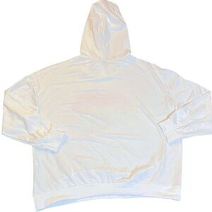 Stylish white hoodie with rainbow colored lip print.Features adjustable drawstrings.