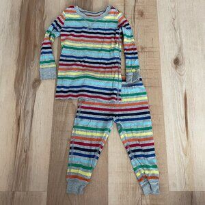Grey background rainbow stripe toddler pajamas. Super cute! Good pre-loved condition.