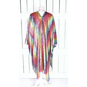 Rainbow striped sequins kimono cardigan jacket
