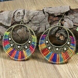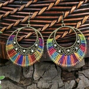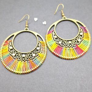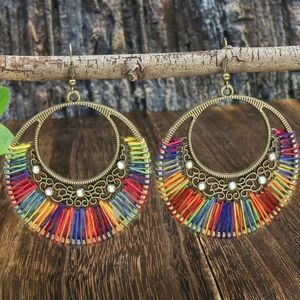 Rainbow threaded Earrings iridescent Stones Bohemian hoop String earrings