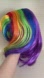 Brand new in packaging. Rainbow wig. Above shoulder length hair with bangs.