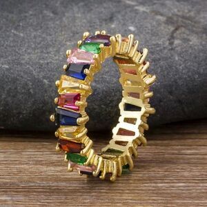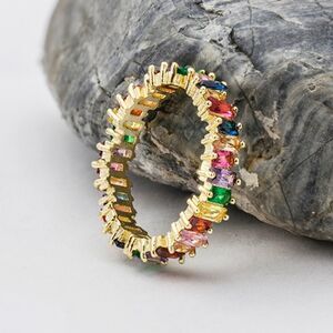 18k gold plated band with AAA grade cubic zirconia in a rainbow array of colors