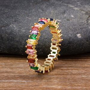 Rainbow Crystal Crooked Baguette Eternity Band Ring NWT is brand new in original packaging and comes in a dust bag
