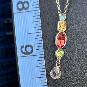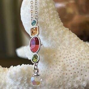 Blue Yellow Red Green & Clear Crystal Rainbow Necklace Made with Swarovski Crystals Silver Tone