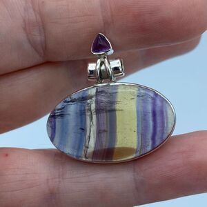 Rainbow Fluorite & Amethyst Sterling Silver Pendant