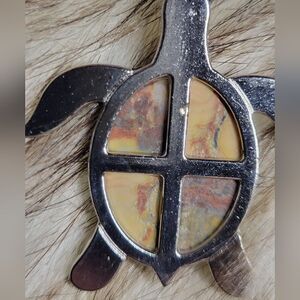 Beautiful Rainbow Picasso Stone Turtle. Chain measures 18 inches. Pendant measures 2 inches. The turtle itself measures 1.5 inches long and 1 inch wide.