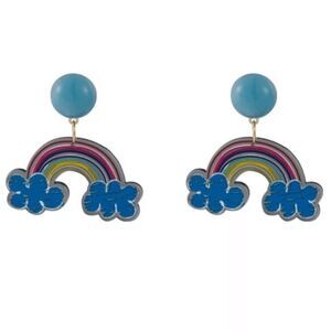 Vibrant & fun rainbow drop earrings. Rainbow with clouds dangles. Great for everyday wear or to festivals/concerts. Acrylic and lightweight. Brand new, never worn. Photos are a part of the description. Color may vary with lighting or device.