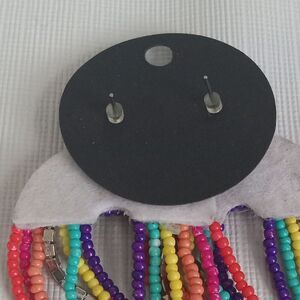Rainbow Shaped Seed Beads & Rhinestone Strand Colorful Fringe Statement Earrings