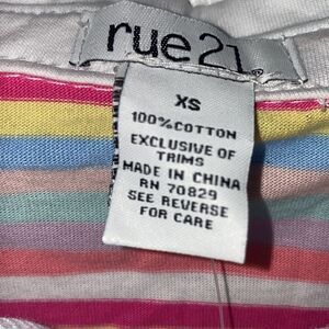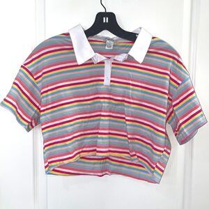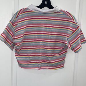 Super cute rainbow striped collard crop top, brand new with tags from Rue21. Bundle and save 10% and only pay one discounted shipping fee. We ship super fast, same/next day shipping!💕