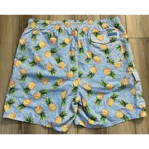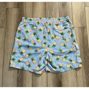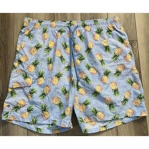 Rainforest Blue Pineapple Print Brief Lined Swim Trunks Water Shorts Men's Large