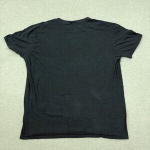 The Rainforest Cafe Llama Black Graphic T-shirt in XL size features a retro design with the phrase "Llama Said Knock You Out." Made from 100% cotton, this short sleeve shirt is machine washable and has a regular fit. The black color and animal-themed print make it a fun addition to any wardrobe, particularly for those who enjoy humorous or restaurant-inspired styles. Perfect for the summer, fall, or spring seasons, this T-shirt is a unique and playful choice for men looking to add a bit of personality to their clothing collection.