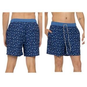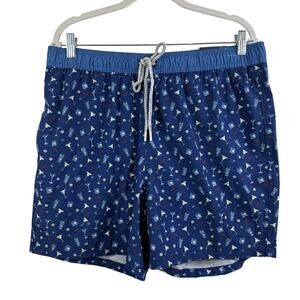 Rainforest New Blue Cocktail Print Volley Swim Trunks Mens Large Quick Dry Beach